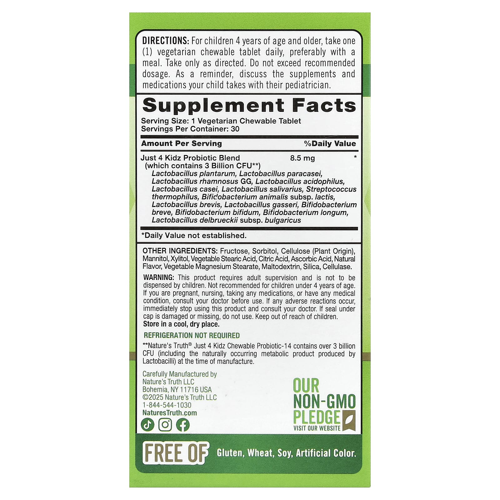 Ajude a manter seus pequeninos felizes e saudáveis com os comprimidos Mastigáveis Probiótico 14 Just 4 Kidz da Nature’s Truth®!