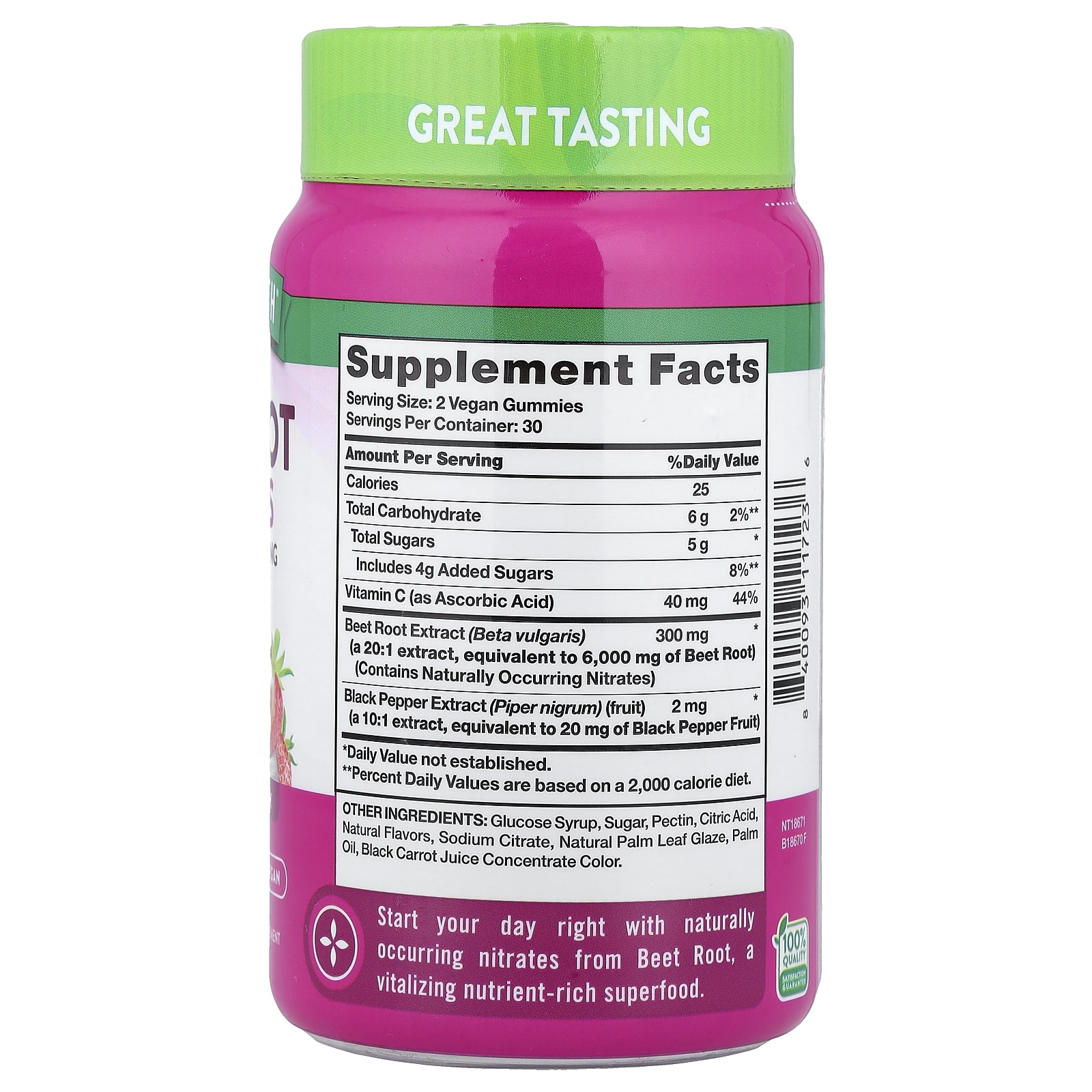 Comece bem o seu dia com os nitratos de ocorrência natural da Raiz de Beterraba, um superalimento rico em nutrientes vitalizante.