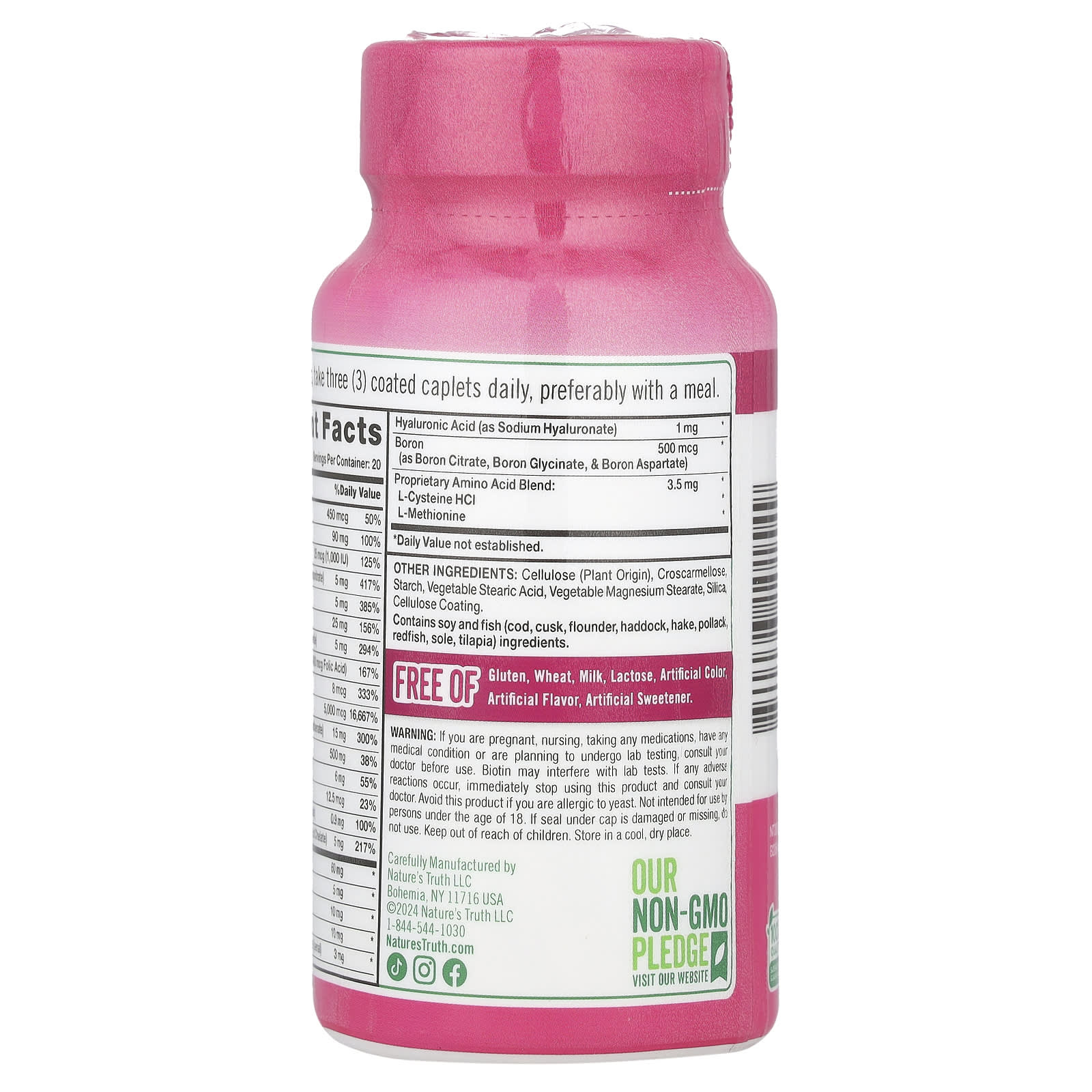 Liberte sua beleza interior com estas cápsulas revestidas para Cabelos, Pele e Unhas. Cada dose fornece uma variedade de vitaminas e minerais benéficos, incluindo 5.000 mcg de Biotina, além de Vitamina C, Vitamina E e muito mais. Essas cápsulas revestidas também fornecem suporte adicional de Colágeno, Ácido Hialurônico e aminoácidos.