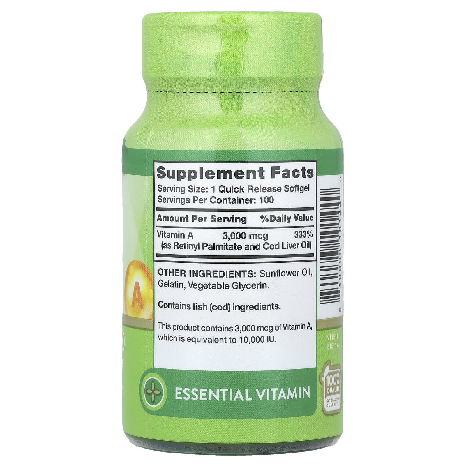 Cada dose de cápsulas softgel de Vitamina A da Nature’s Truth fornece 10.000 UI (3.000 mcg) dessa vitamina fundamental do Palmitato de Retinol e Óleo de Fígado de Bacalhau. Basta uma cápsula softgel de liberação rápida por dia para atender aos valores diários recomendados desta vitamina essencial.