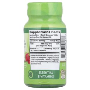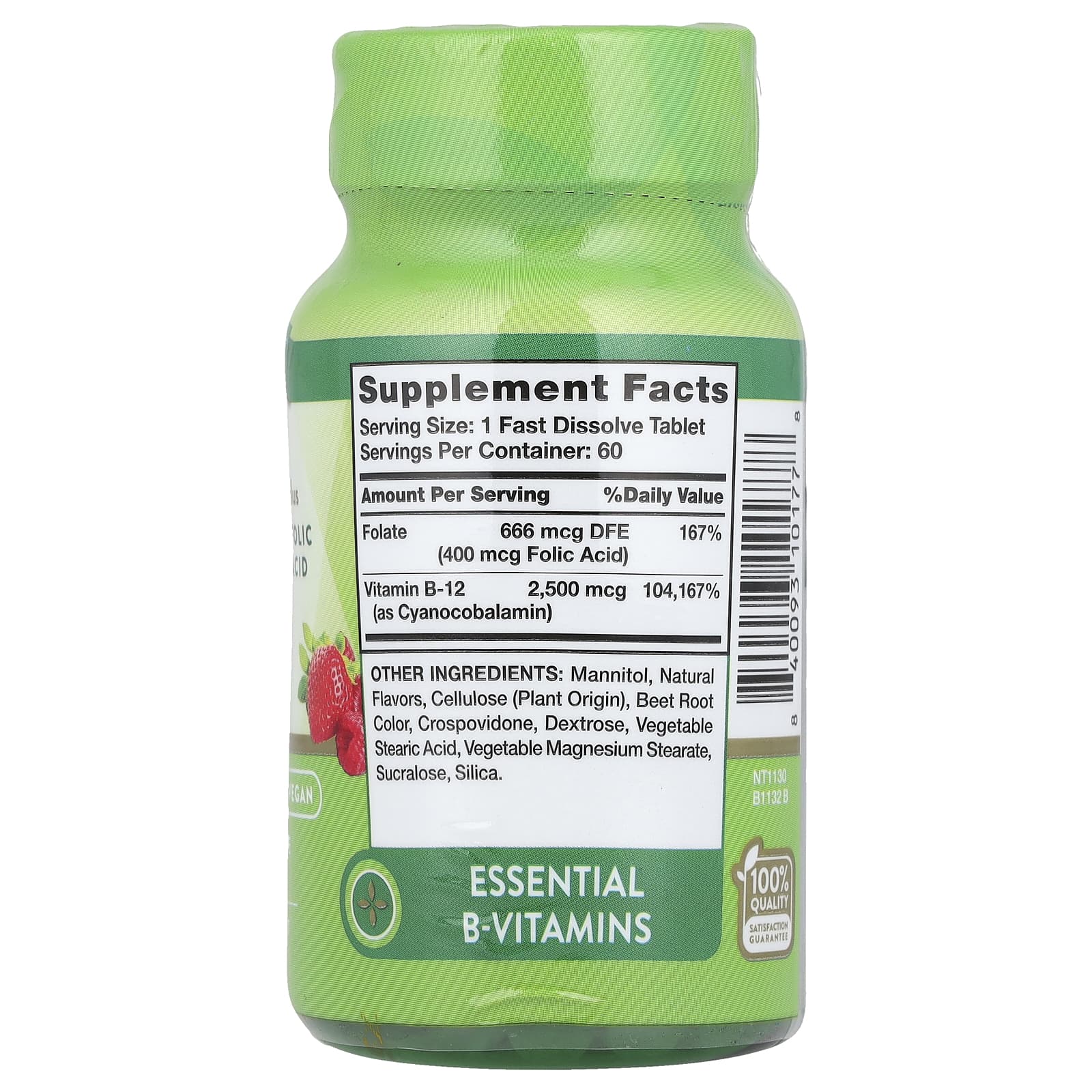Natures Truth Vitamina B-12 mais Ácido Fólico Fruto Silvestre Natural 2.500 mcg 60 Comprimidos de Dissolução Rápida – Nature’s Truth Suplementos Vitaminas Vitamina B Vitamina B12 (Cobalamina).