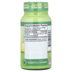 Natures Truth Vitamina D3 de Alta Potência 25 mcg (1.000 UI) 250 Cápsulas Softgel de Liberação Rápida – Nature’s Truth Suplementos Vitaminas Vitamina D.