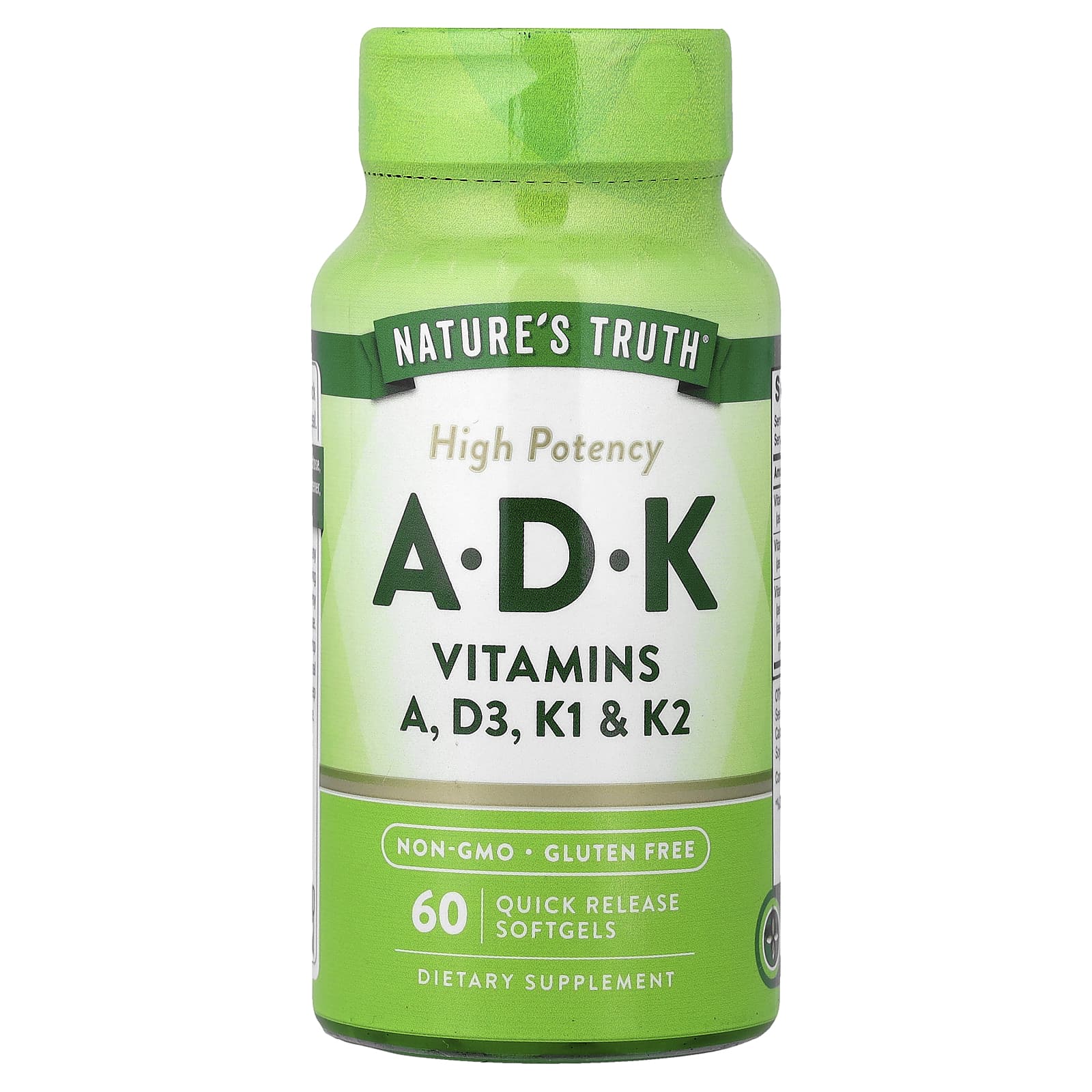 Natures Truth Vitaminas A D e K Alta Potência 60 Cápsulas Softgel de Liberação Rápida