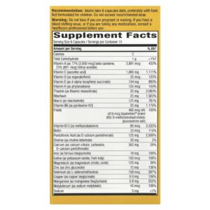 | Vitamina A (como 77% [3.000 mcg] betacaroteno, 23% [891 mcg] acetato de retinol) | 3.891 mcg | 432% |