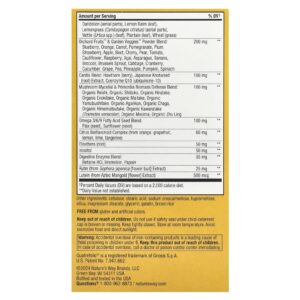 - Incluindo Daily Greens™ &Misturas em Pó Orchard Fruits ™ / Garden Veggies™ (600 mg por dose)