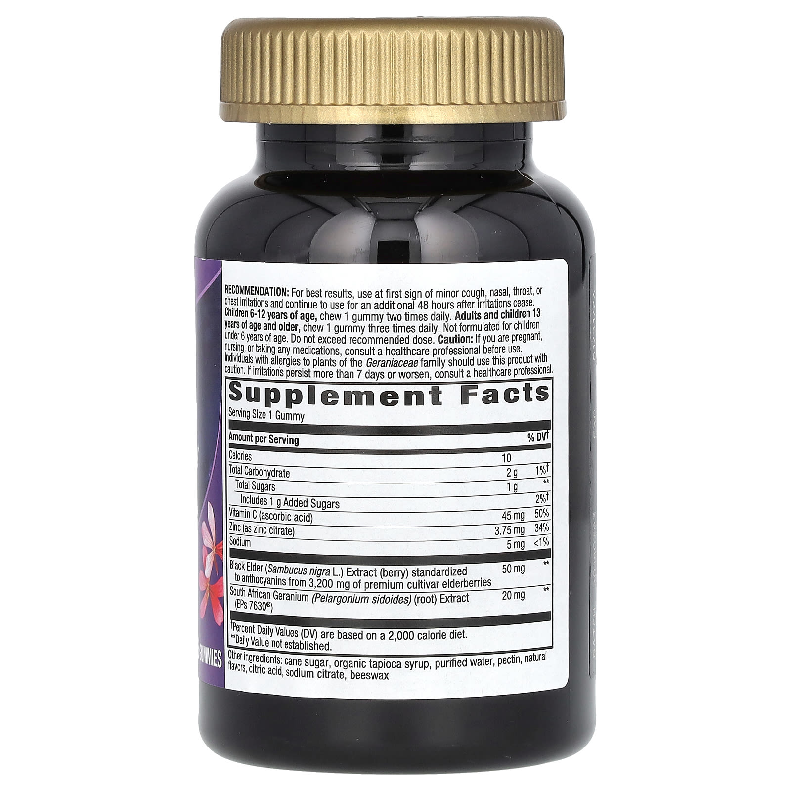 - Com extrato da raiz de Gerânio Sul-africano clinicamente comprovado para aliviar a tosse ocasional associada à rouquidão, garganta seca e irritações, e para reduzir a duração e a gravidade de pequenas irritações nasais, na garganta e no peito.