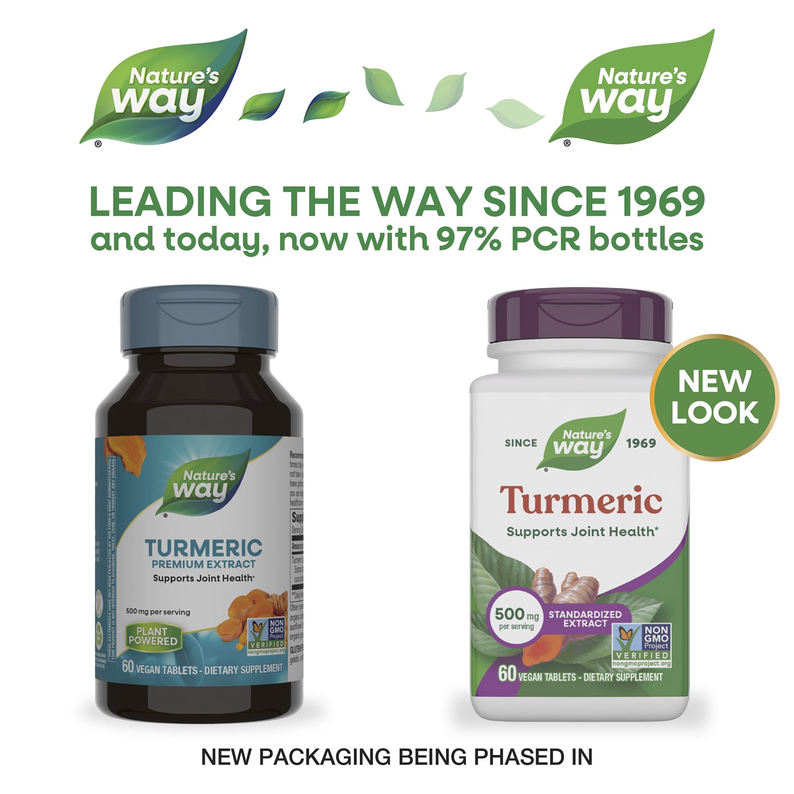 Natures Way Cúrcuma 500 mg 60 Comprimidos Veganos – Nature’s Way Suplementos Antioxidantes Cúrcuma e Curcumina.