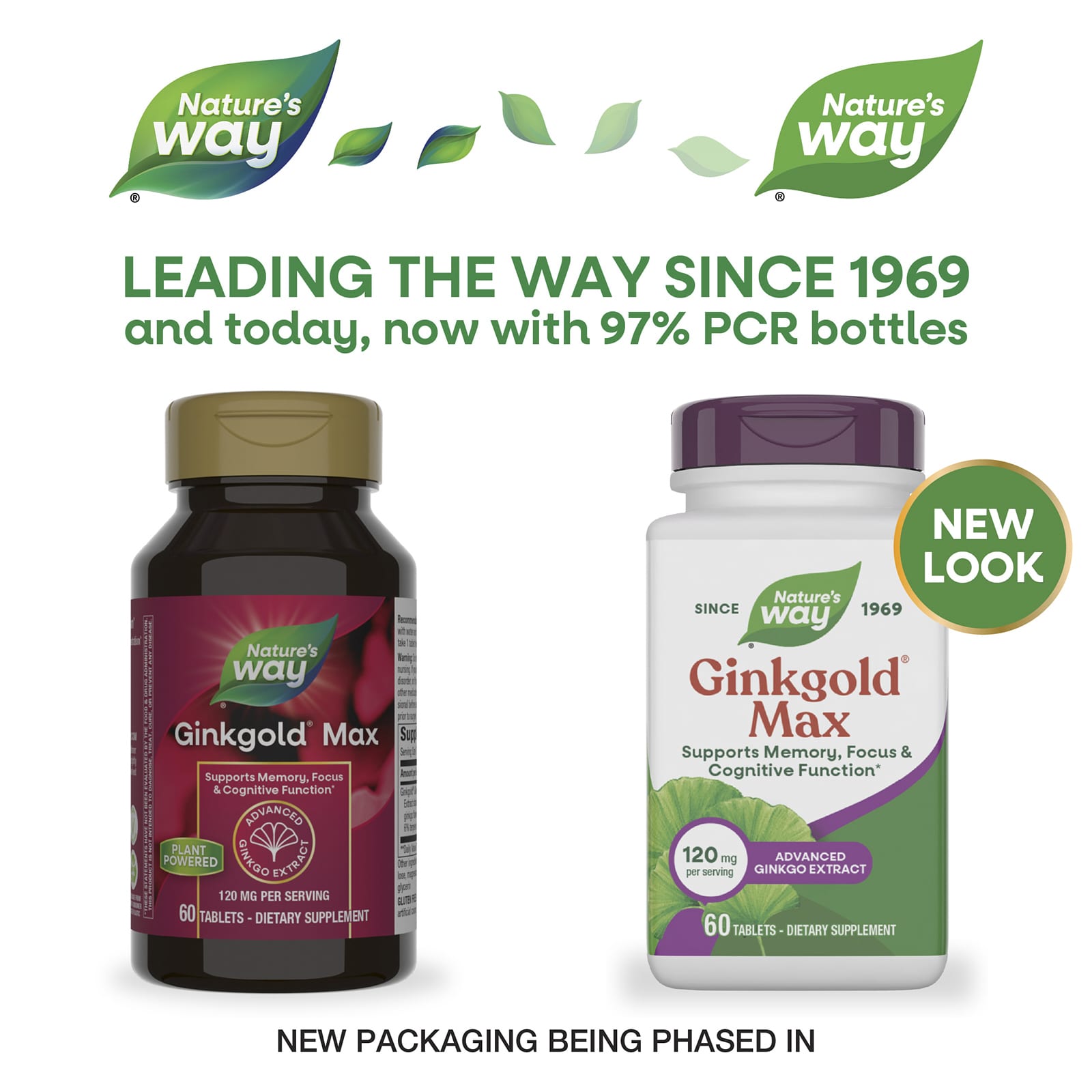 Natures Way Ginkgold® Max 120 mg 60 Comprimidos – Nature’s Way Suplementos Ervas Ginkgo Biloba.
