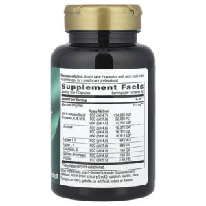 Adultos devem tomar 2 cápsulas com cada refeição ou conforme recomendado por um profissional de saúde.