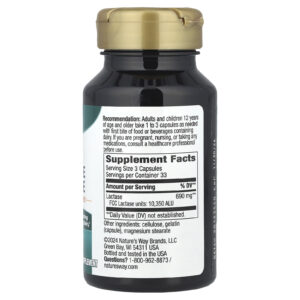Natures Way Lactose Defense 100 Cápsulas (230 mg por Cápsula) – Nature’s Way Suplementos Saúde Intestinal Enzimas Digestivas Lactase.