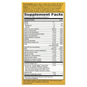 Com 19 vitaminas e minerais em 100% ou mais dos Valores Diários por dose de 2 cápsulas softgel.