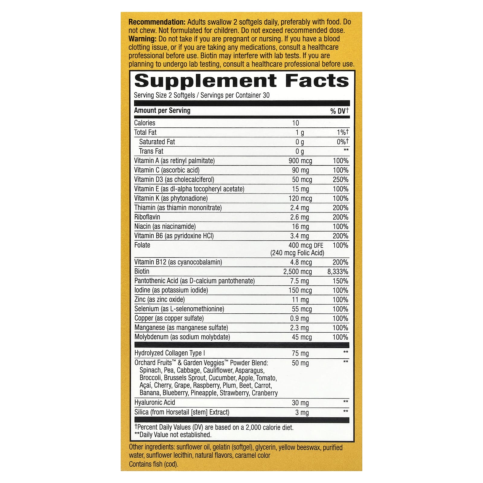 - Com 2.500 mcg de biotina por dose de 2 cápsulas softgel