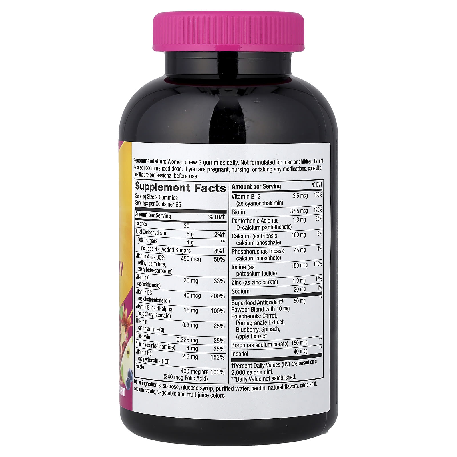 - Com uma mistura de Superalimentos Antioxidantes‡ em pó (50 mg por dose de 2 gomas)
