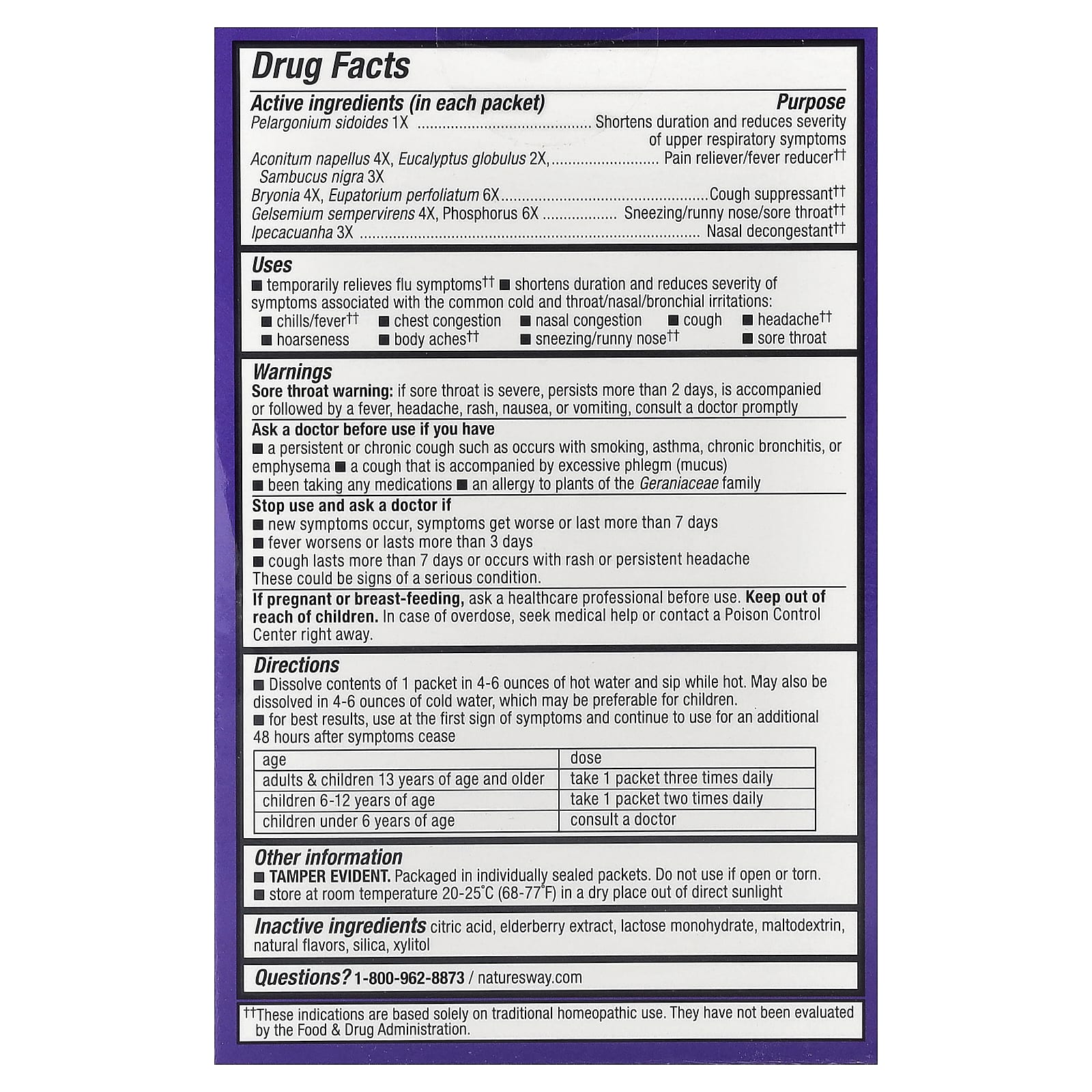 Usos: Alivia temporariamente os sintomas da gripe††. reduz a duração e a gravidade dos sintomas associados a resfriado comum e a irritações do nariz, da garganta e dos brônquios.