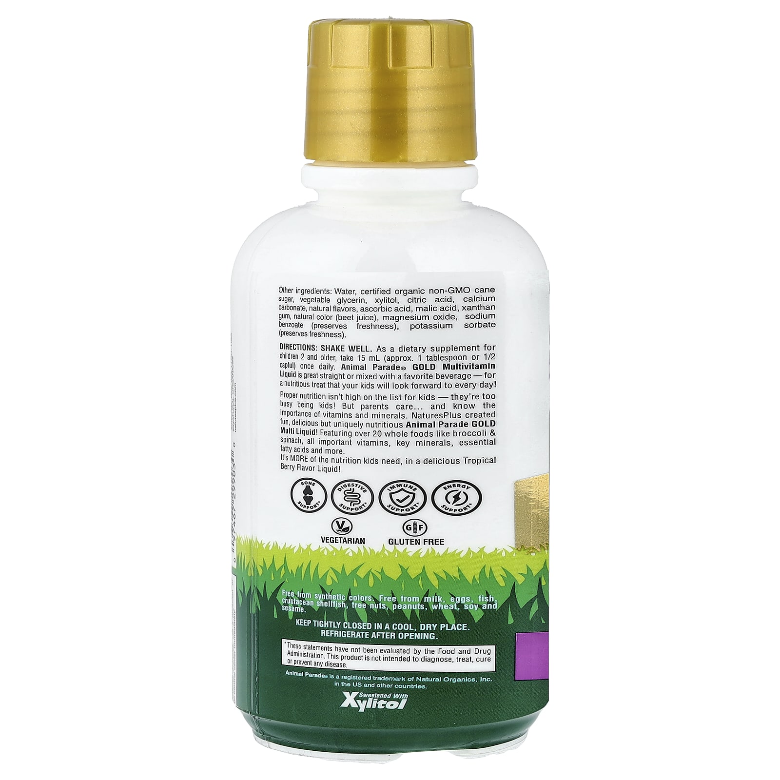 NaturesPlus Animal Parade® Gold Multivitamínico Líquido Fruto Silvestre Tropical 480 ml (16 fl oz) – Nature’s Plus Bebês e Crianças Saúde Infantil Vitaminas para Crianças Multivitamínicos Infantis.
