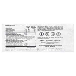 Mistura de Alimentos Integrais e Ácidos Graxos Saudáveis (fornecendo ácidos graxos alfalinoleico, linoleico, oleico e palmítico de ocorrência natural), maçã§, espirulina, rosa-mosqueta (fruta de Rosa canina), óleo de semente de girassol em pó, casca de arroz, mamão, linhaça, cenoura, cereja das Índias Ocidentais (Malpighia glabra fruta), manga, couve§, espinafre§, brócolis, couve-flor§, urtiga§, cogumelo reishi§, pectina de maçã, broto de brócolis§, salsa§, tomate§, chlorella§, mirtilo§, suco de beterraba§, cogumelo maitake§ , cogumelo shiitake§, mirtilo europeu§, couve§. |