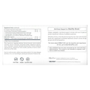 NaturesPlus Hema-Plex 60 Cápsulas de Ação Rápida – Nature’s Plus Suplementos Minerais Ferro Saúde Suporte cardiovascular Fórmulas para o Sistema Circulatório.
