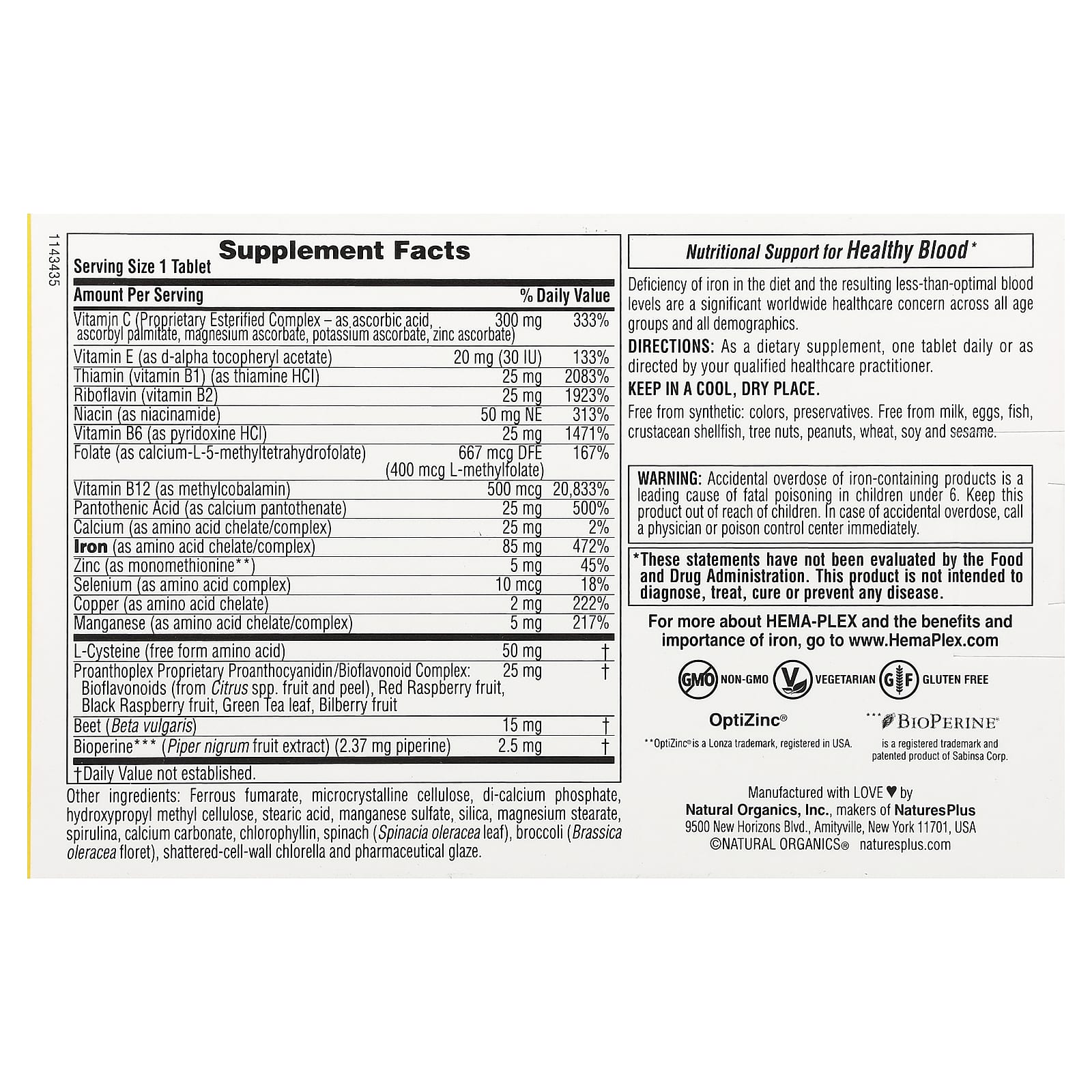 NaturesPlus Hema-Plex® Ferro com Nutrientes Essenciais para Glóbulos Vermelhos Saudáveis 10 Comprimidos de Liberação Lenta – Nature’s Plus Suplementos Minerais Ferro Saúde Auxílio Cardiovascular Fórmulas para circulação.