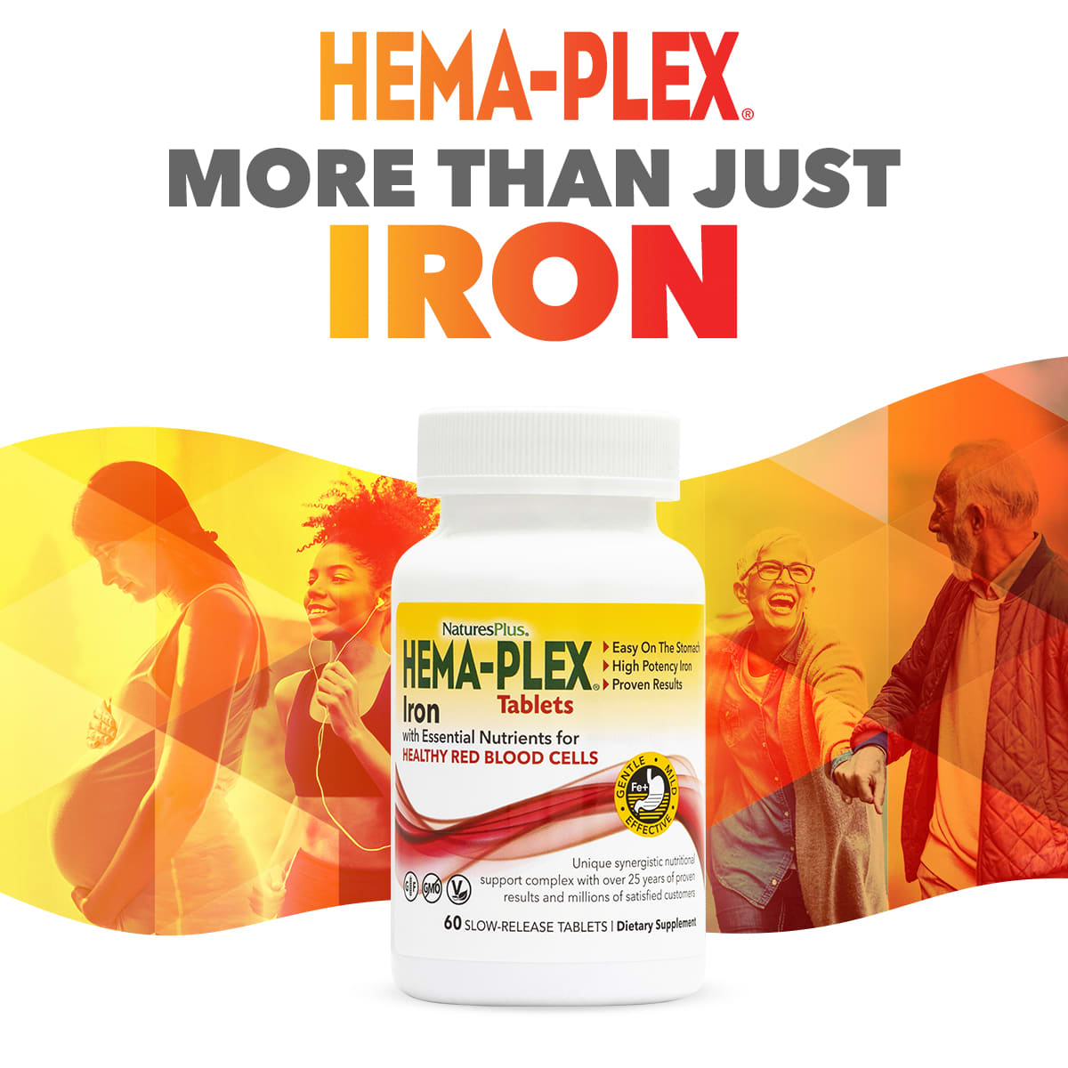 NaturesPlus Hema-Plex® Ferro com Nutrientes Essenciais para Glóbulos Vermelhos Saudáveis 60 Comprimidos de Liberação Lenta – Nature’s Plus Suplementos Minerais Ferro Saúde Auxílio Cardiovascular Fórmulas para circulação.