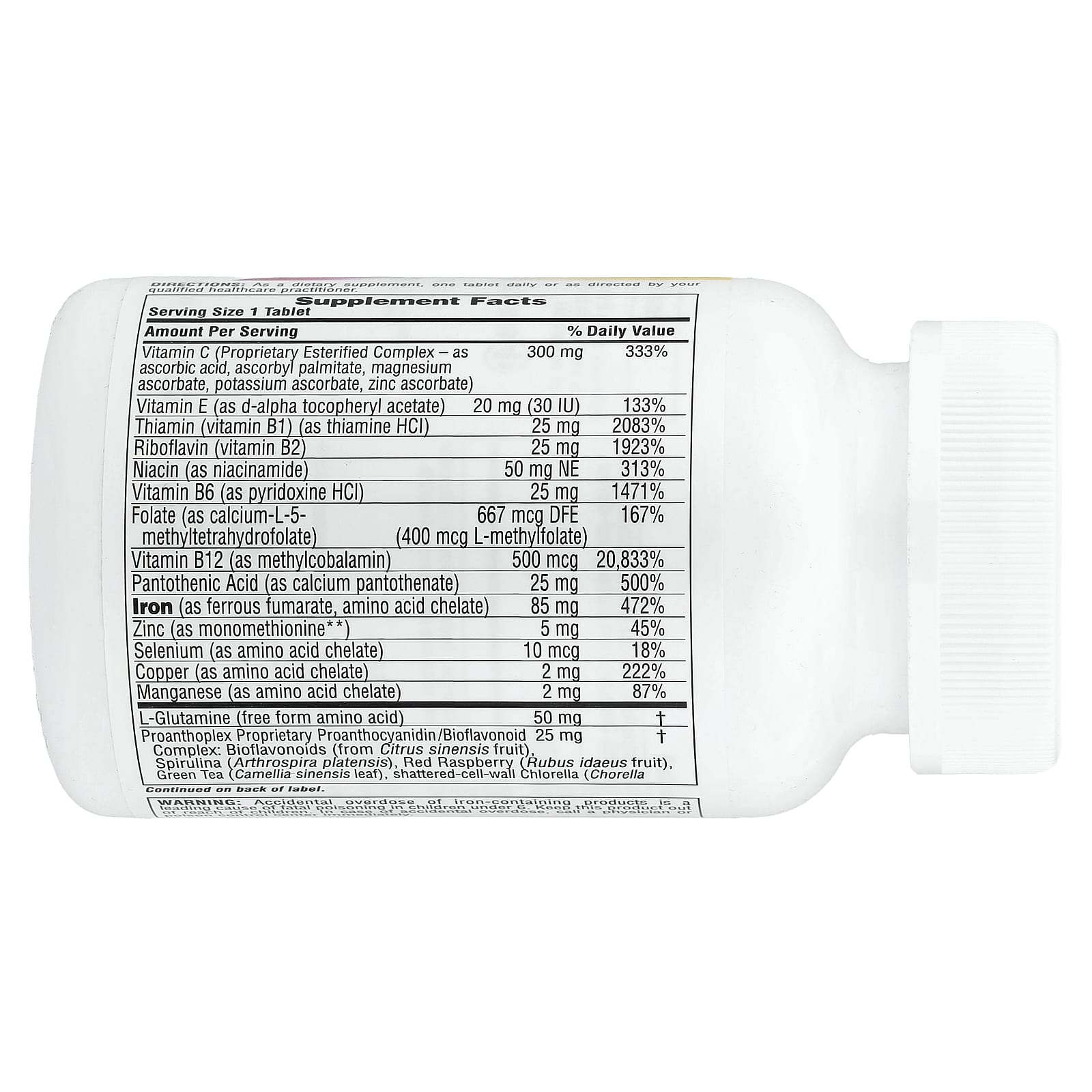 | Folato (como cálcio-L-5-metiltetrahidrofolato) | 667 mcg DFE (400 mcg de L-metilfolato) | 167% |