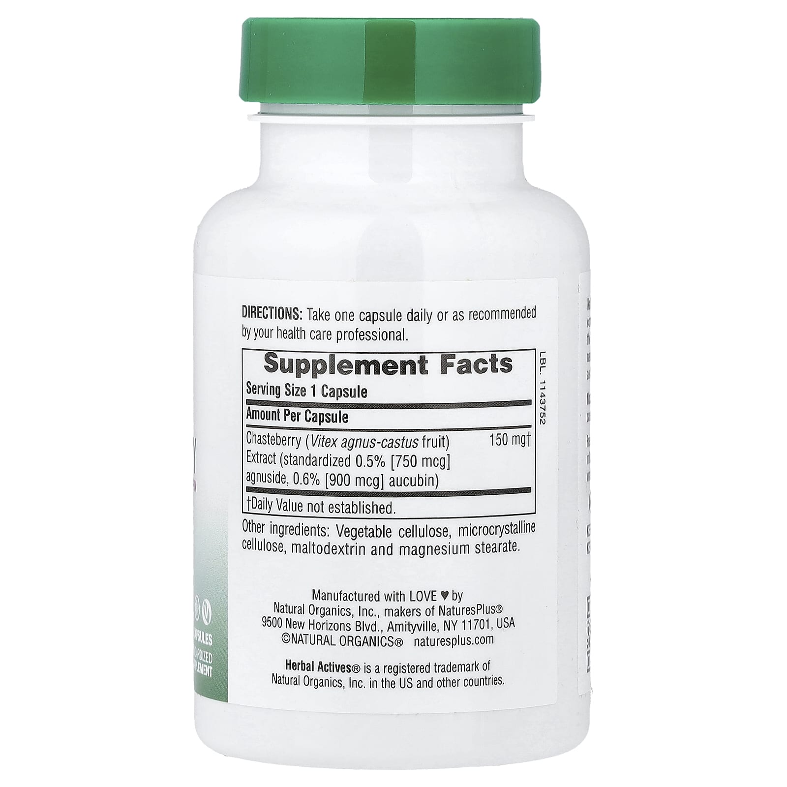 NaturesPlus Herbal Actives Agnocasto 150 mg 60 Cápsulas – Nature’s Plus Suplementos Ervas Vitex (Chaste Berry).