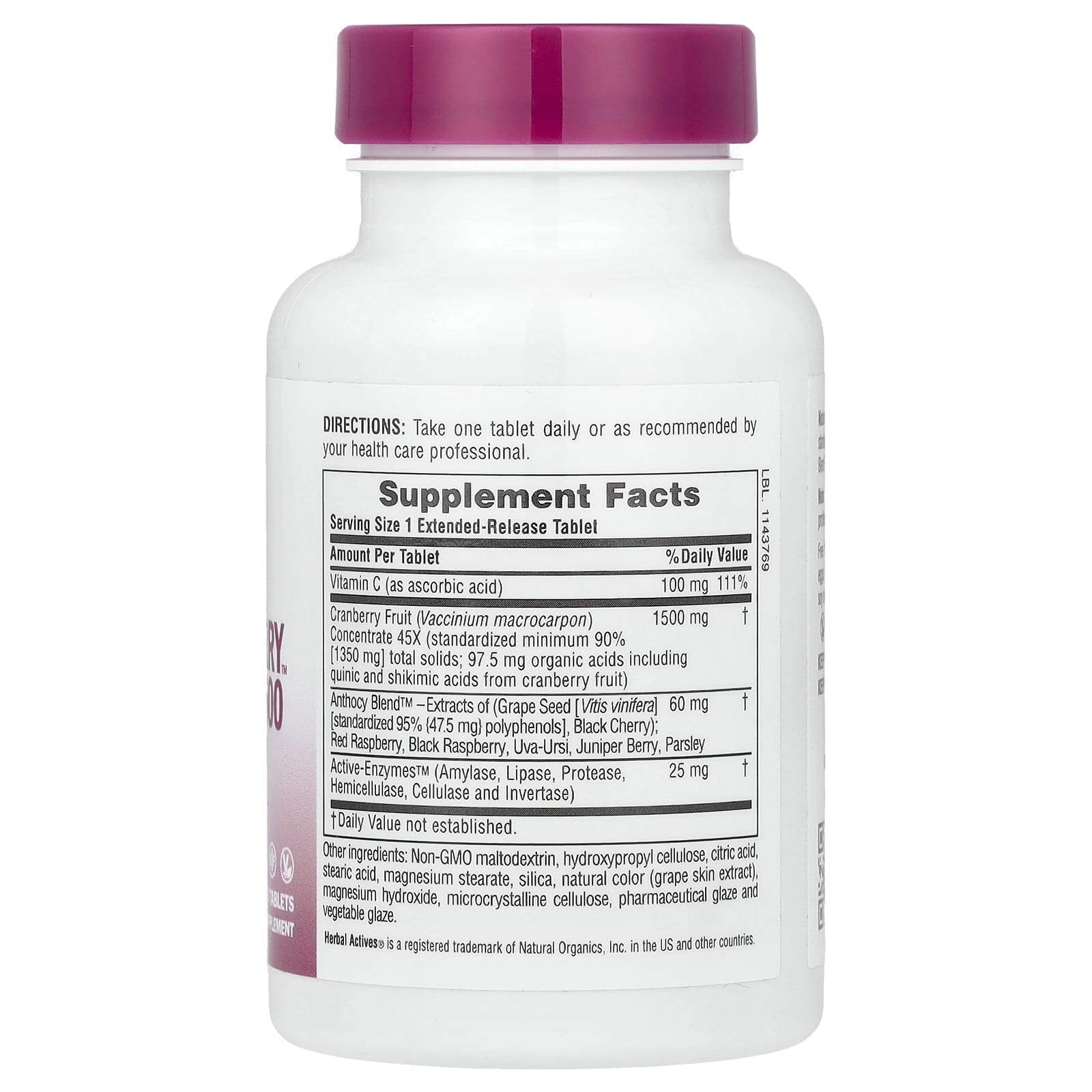 O Ultra Cranberry™ 1500 Herbal Actives da NaturesPlus® é um concentrado de fruta de cranberry padronizado com o auxílio do nosso Anthocy Blend™ e Active-Enzymes™ em um comprimido de liberação prolongada.