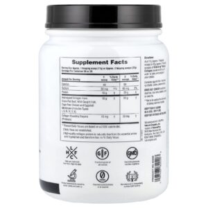 | Colágeno Hidrolisado de: Carne de Gado Criado no Pasto, Peixe Selvagem, Frango Criado Solto e Membrana de Casca de Ovo (inclui os Tipos I, II, III, IV, V, X) |