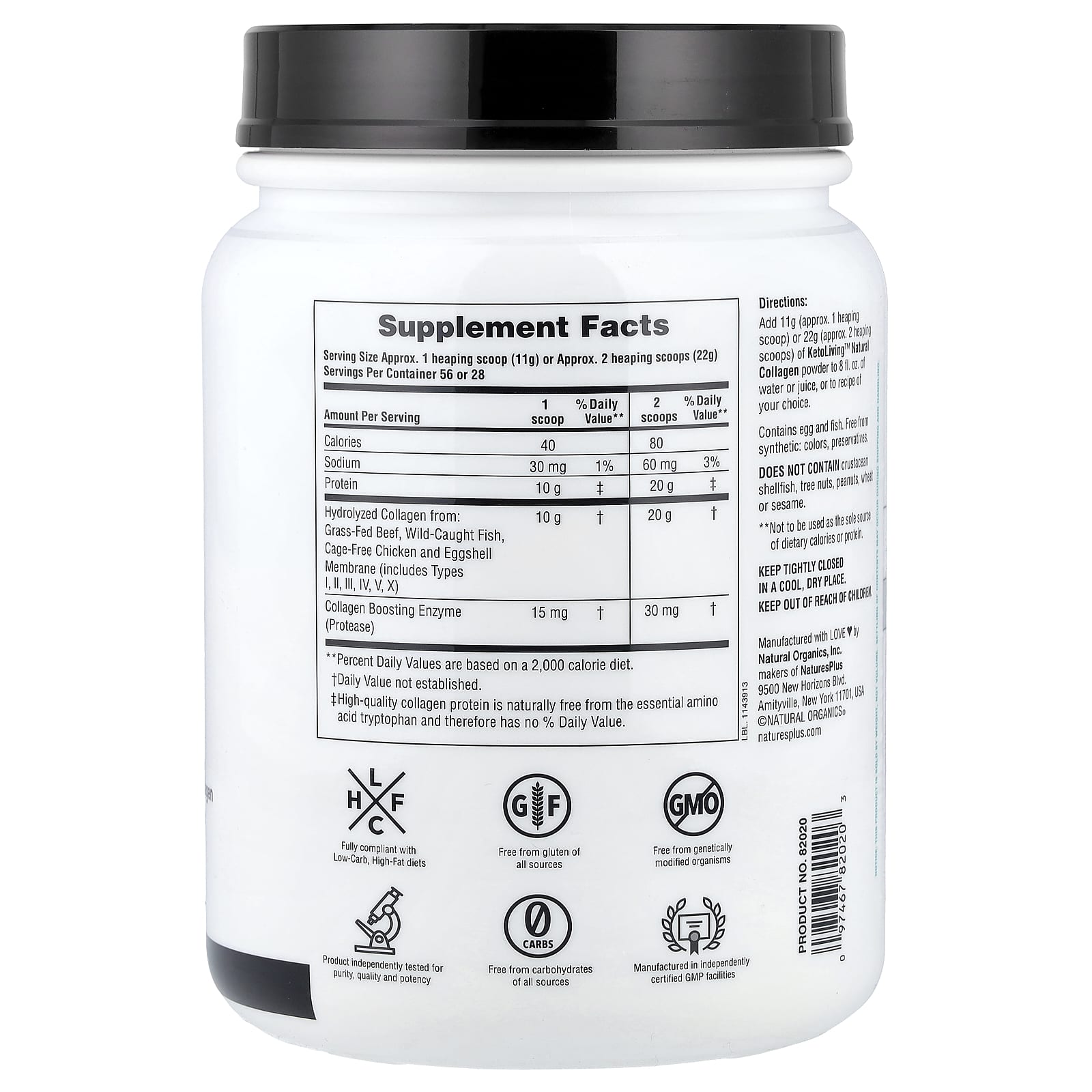 NaturesPlus KetoLiving™ Colágeno Natural 616 g (136 lb) – Nature’s Plus Suplementos Ossos, Articulações e Cartilagem Colágeno, Suplementos.