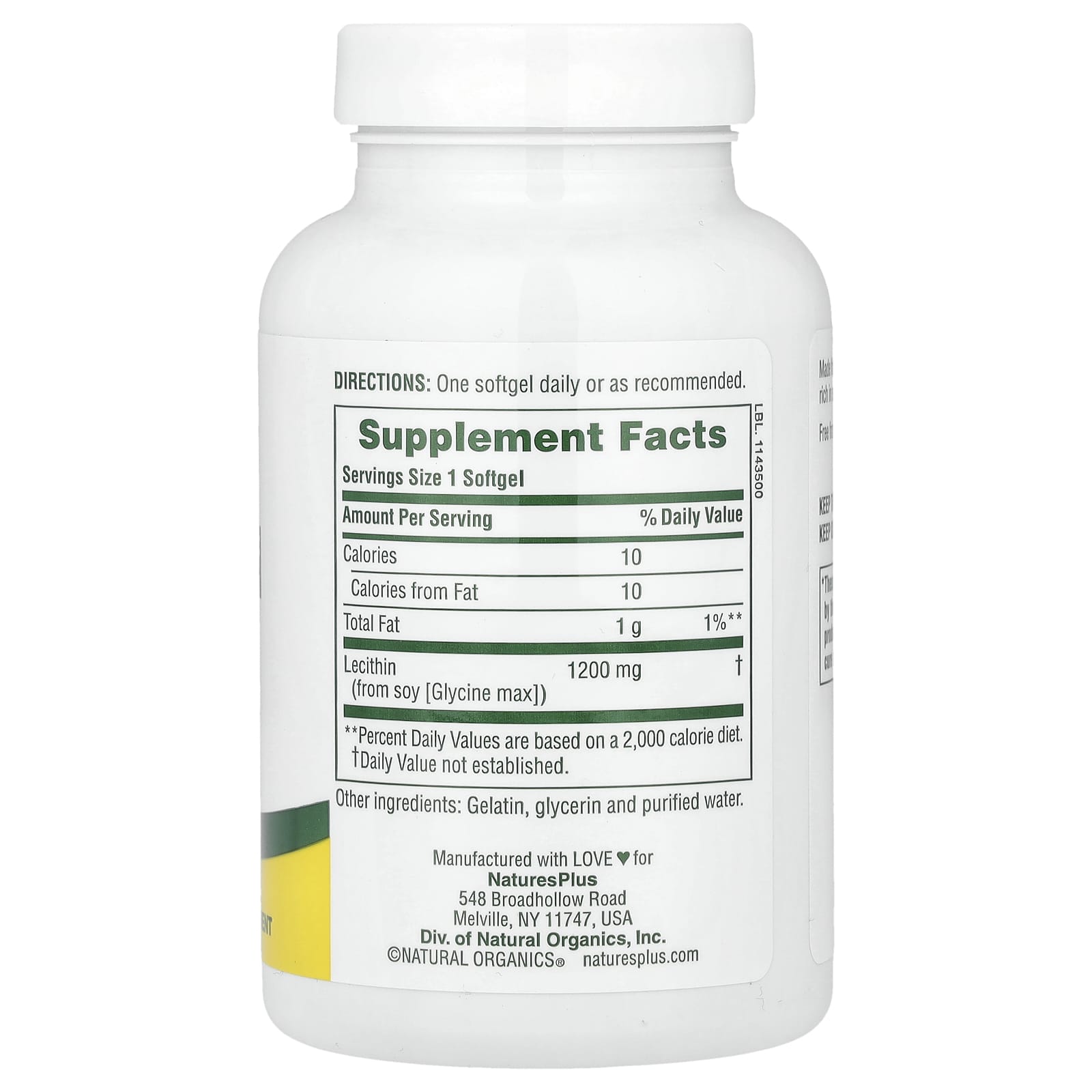 NaturesPlus Lecitina 1.200 mg 90 Cápsulas Softgel – Nature’s Plus Suplementos Fosfolipídeos Lecitina.