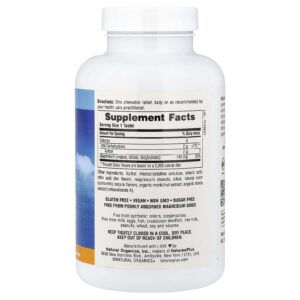 Um comprimido mastigável diariamente ou conforme recomendado pelo seu profissional de saúde.