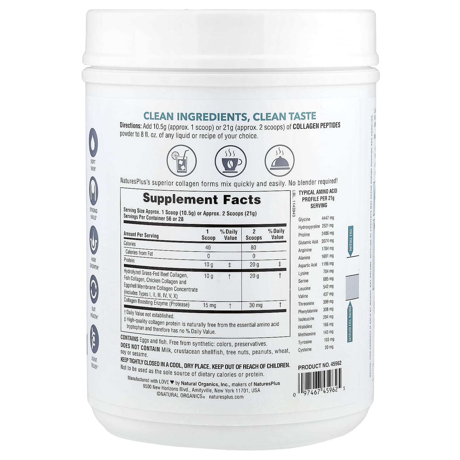 Tenha sua melhor aparência e sinta-se melhor com os Peptídeos de Colágeno da NaturesPlus. Reforce a saúde dos cabelos, da pele, das unhas, das articulações, do sistema imunológico e muito mais com o poder dos peptídeos de proteína de colágeno.