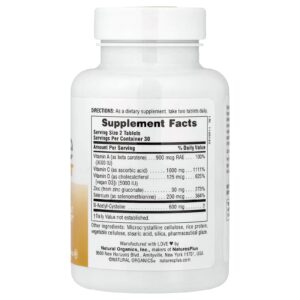 | Vitamina A (como betacaroteno) (3000 UI) | 900 mcg RAE | 100% |
