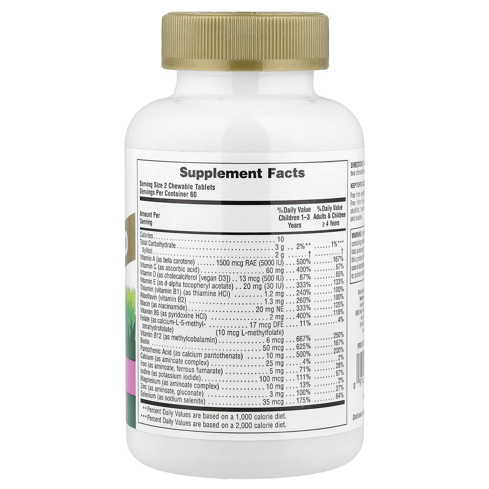 Como suplemento alimentar para crianças, mastigue dois comprimidos uma vez ao dia. Projetado para crianças em idade segura para mastigar e mais velhos.