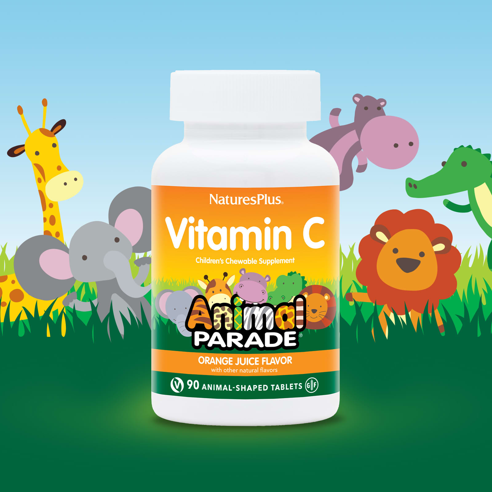 NaturesPlus Source of Life Animal Parade Vitamina C Sabor Natural de Suco de Laranja 90 Comprimidos em Forma de Animal – Nature’s Plus Bebês e Crianças Saúde Infantil Vitaminas para Crianças Vitamina C para Crianças Saúde Gripe e Resfriado.