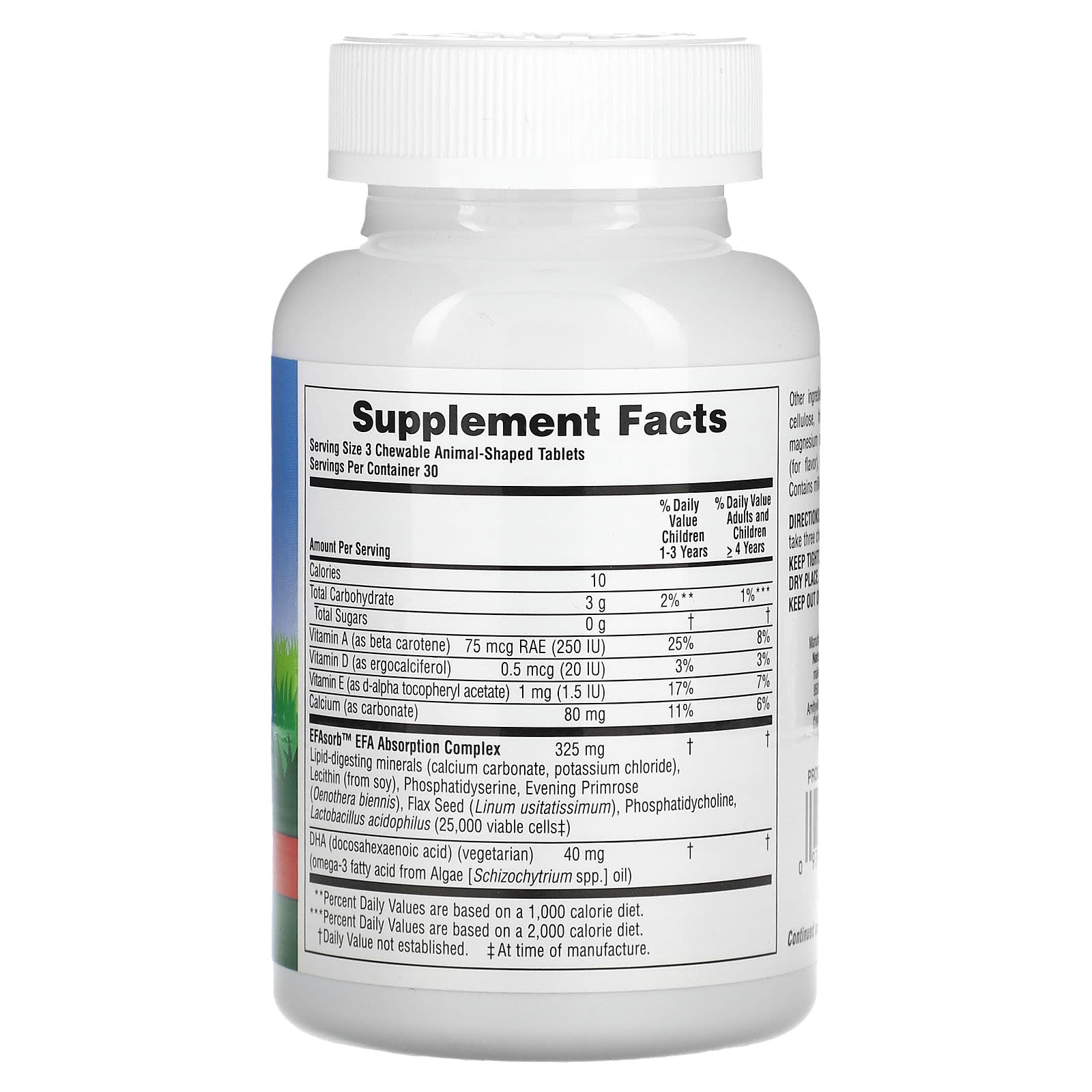 | Complexo de Absorção de EFA EFAsorb™ Minerais de digestão de lipídios (carbonato de cálcio, cloreto de potássio), Lecitina (de soja), Fosfatidilserina, Prímula (Oenothera biennis), Linhaça (Linum usitatissimum), Fosfatidilcolina, Lactobacillus acidophilus (25.000 células viáveis‡) |