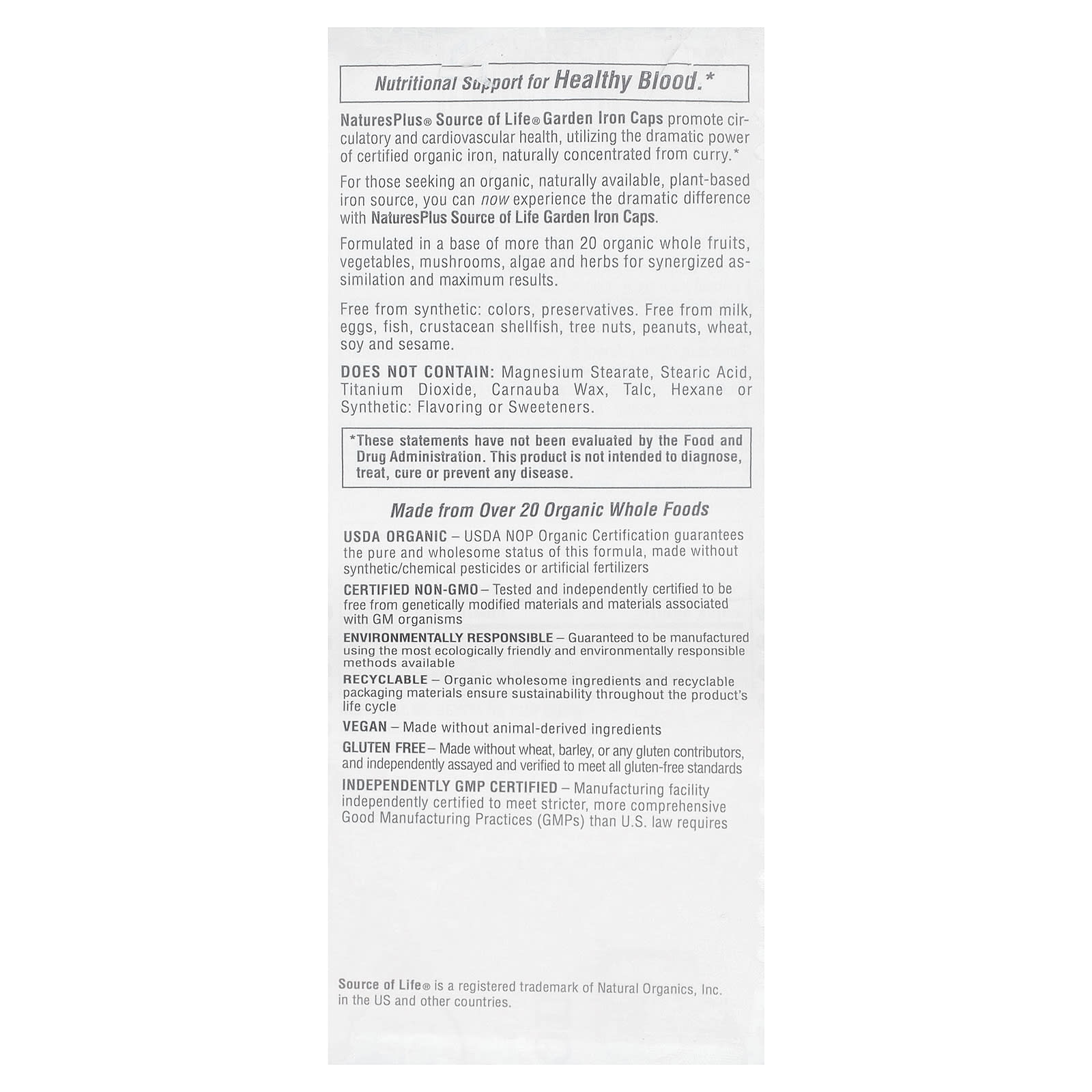 Para aqueles que buscam uma fonte de ferro orgânica e naturalmente disponível à base de plantas, agora você pode experimentar a diferença dramática com as Cápsulas de Ferro do Nature Plus Source of Life.