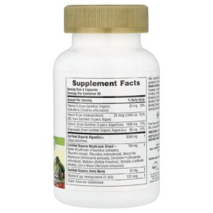 Com base em mais de 20 frutas, vegetais, cogumelos, ervas, algas e outros alimentos verdes orgânicos integrais.