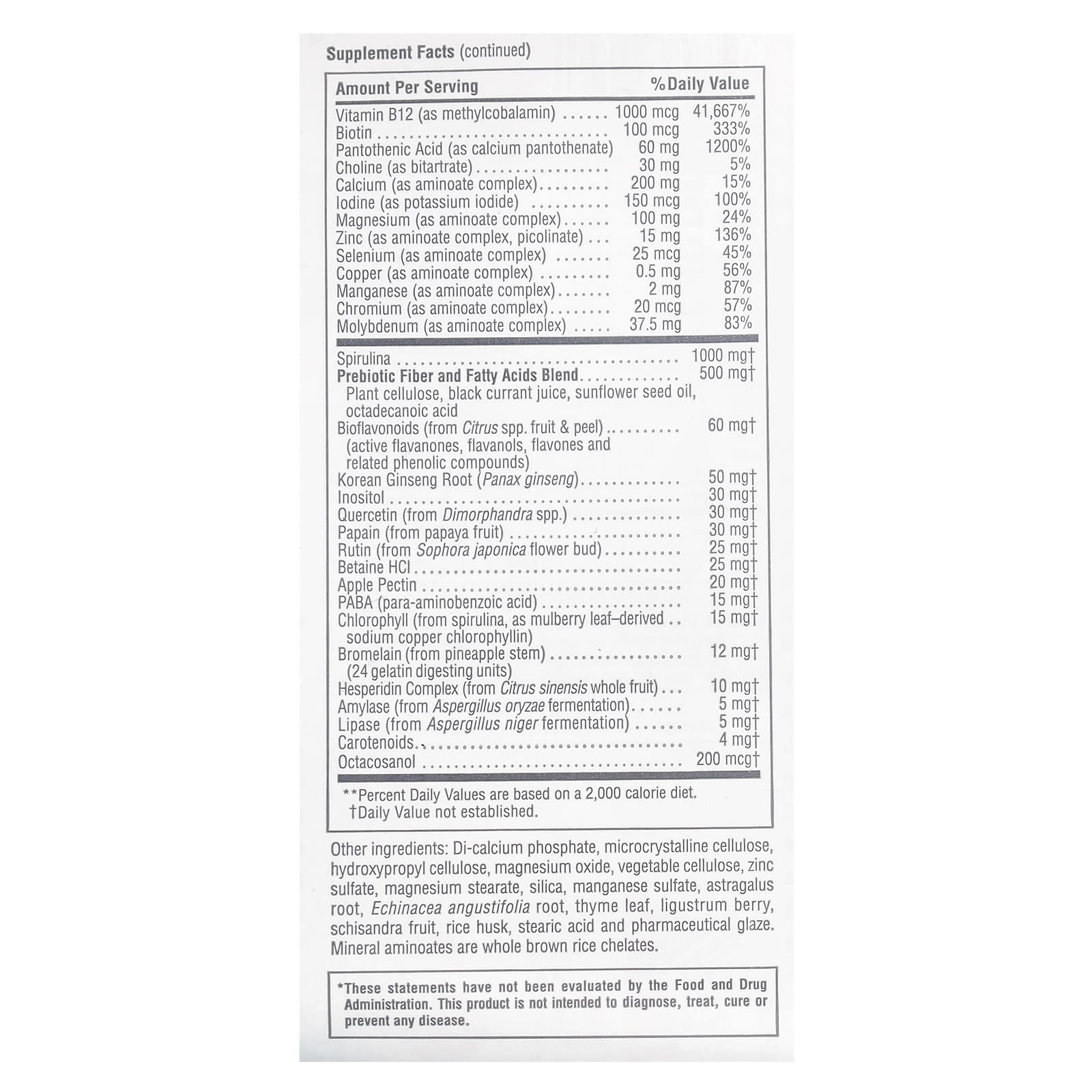 Fosfato dicálcico, celulose microcristalina, hiprolose, óxido de magnésio, celulose vegetal, sulfato de zinco, estearato de magnésio, silício, sulfato de manganês, raiz de astrágalo, Raiz de Echinacea angustifolia, folha de tomilho, baga de alfena, fruto de schisandra, casca de arroz, ácido esteárico e revestimento farmacêutico.