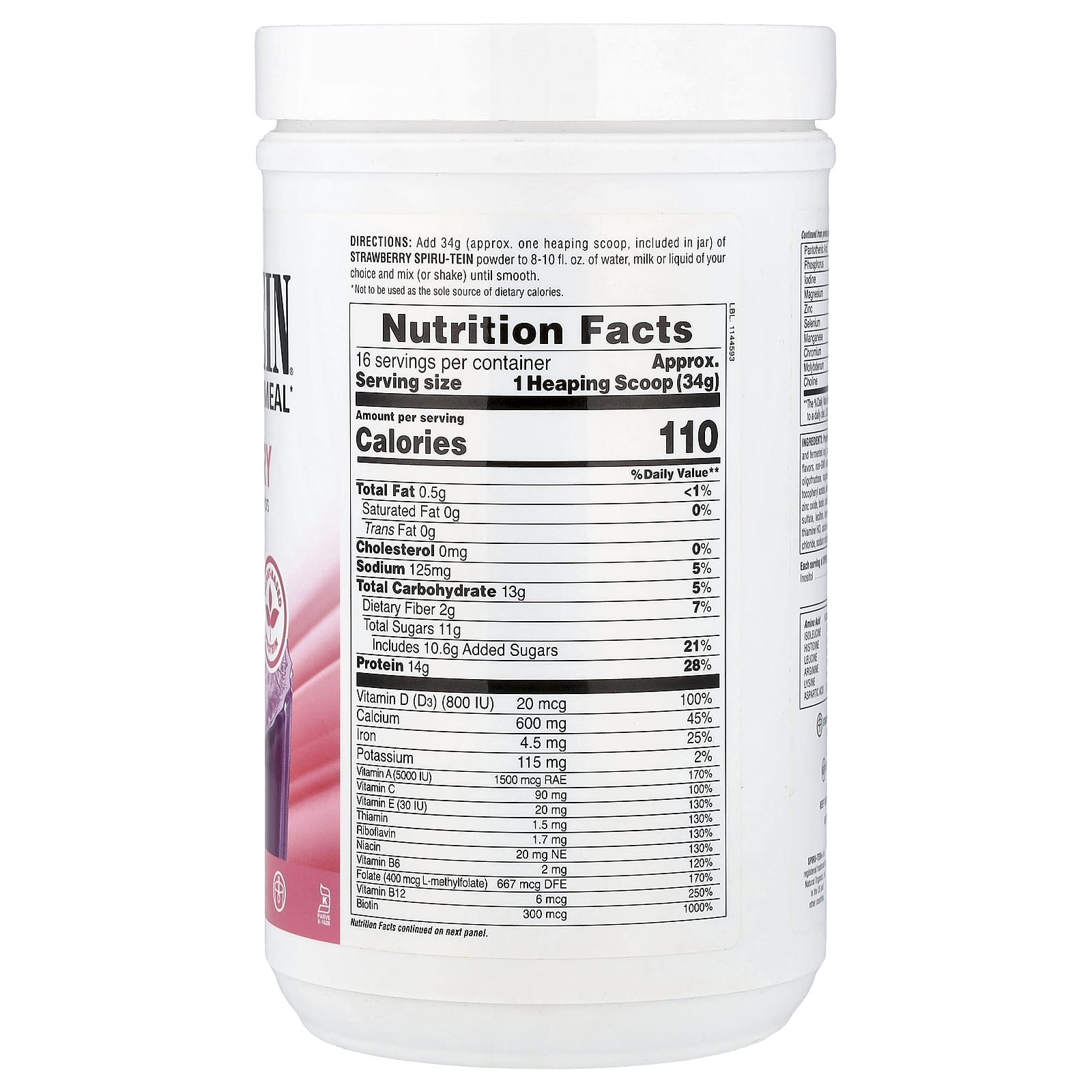 Adicione 34 g (aprox. Uma colher medidora, incluída no frasco) de Spiru-Tein de Morango em pó a 8-10 fl oz de água, leite ou líquido de sua escolha e misture (ou agite) até ficar homogêneo.