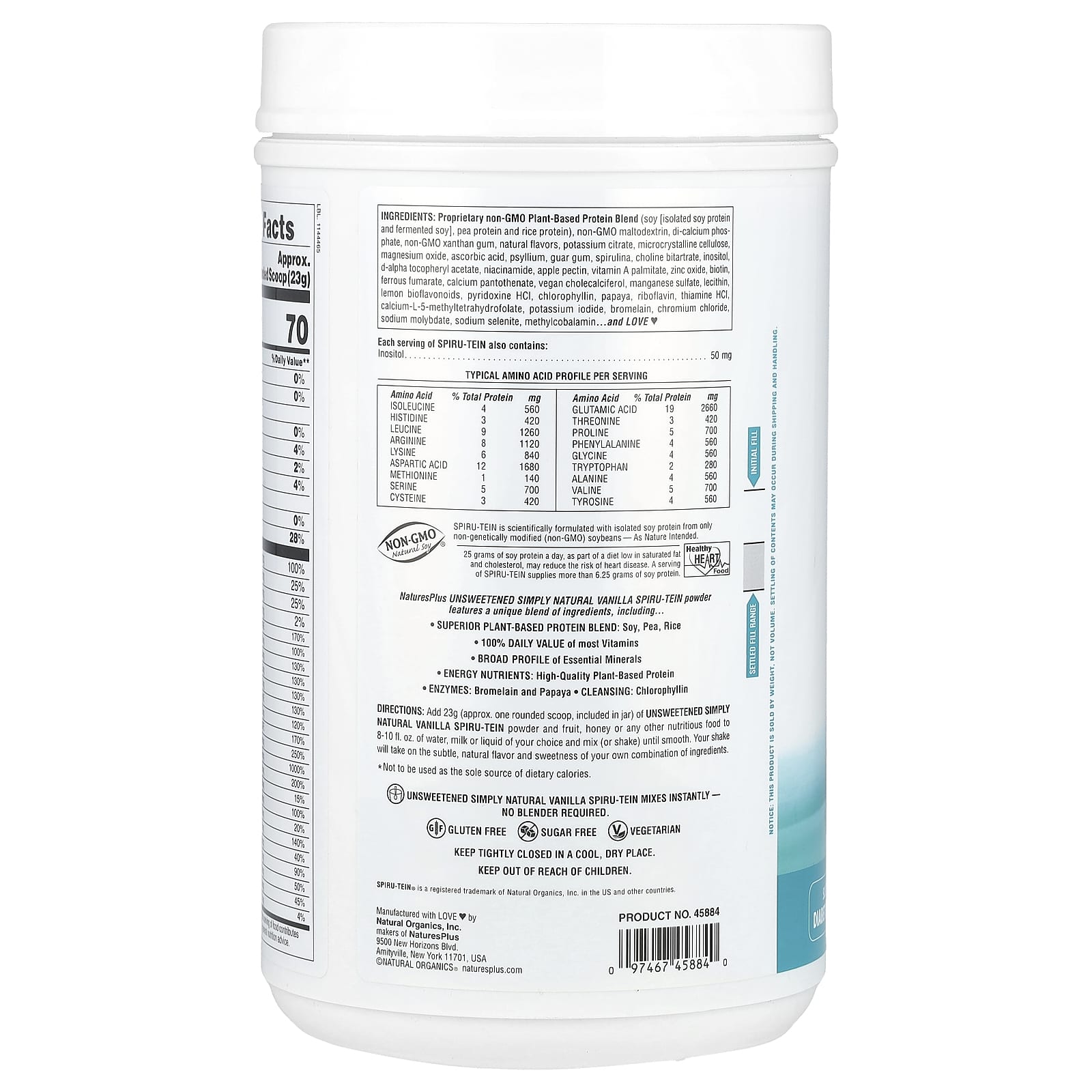 Spiru-Tein de Baunilha Original Simply Natural em Pó da Nature’s Plus apresenta uma mistura única de ingredientes, entre eles…