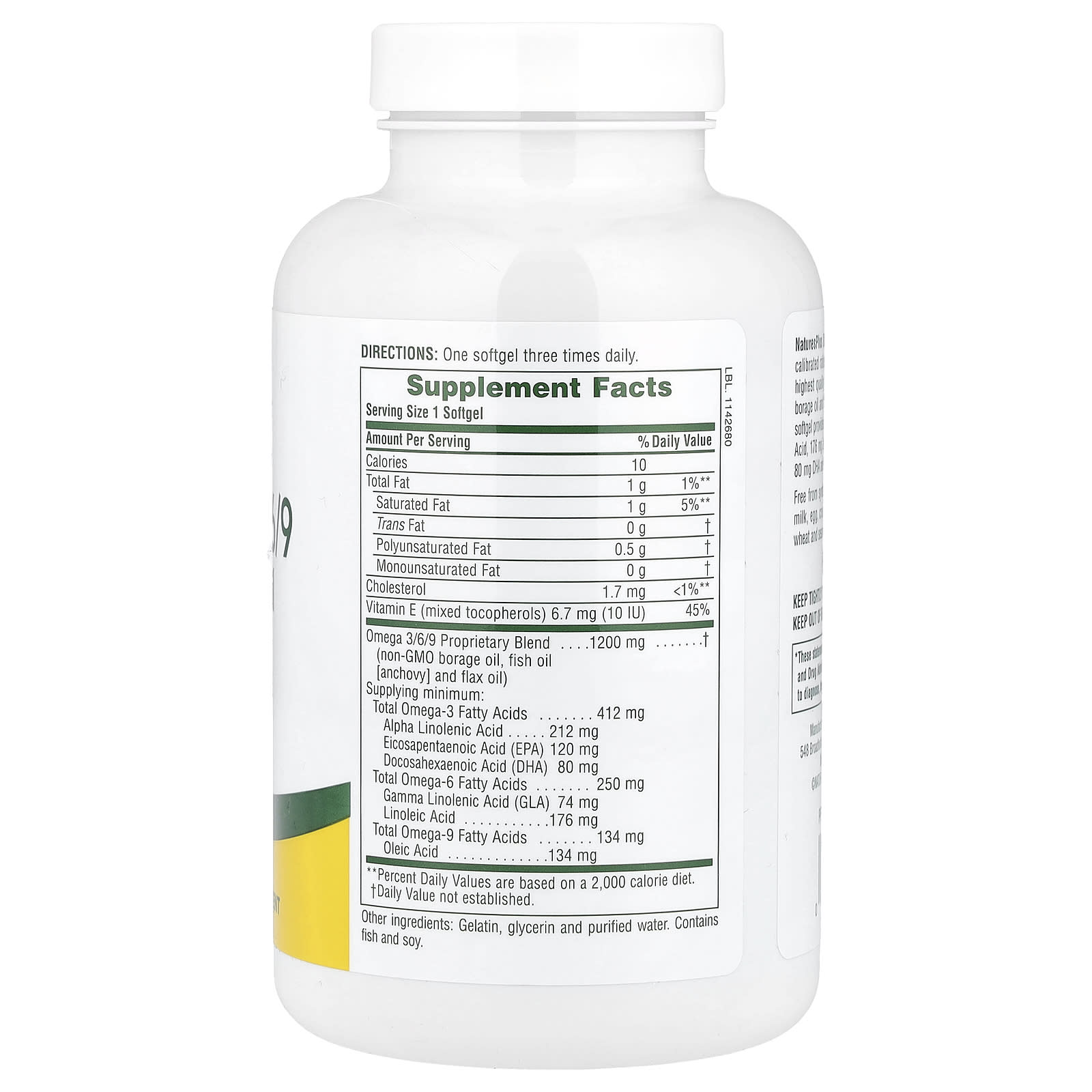 O Ultra Ômega 3/6/9 da NaturesPlus fornece proporções calibradas com precisão de ácidos graxos insaturados do óleo de peixe da mais alta qualidade e óleo de borragem não OGM e óleo de linhaça prensados a frio disponíveis. Cada cápsula softgel fácil de engolir fornece no mínimo 212 mg de Ácido Alfa-Linolênico, 176 mg de Ácido Linoleico, 74 mg de GLA, 120 mg de EPA, 80 mg de DHA e 134 mg de Ácido Oleico.