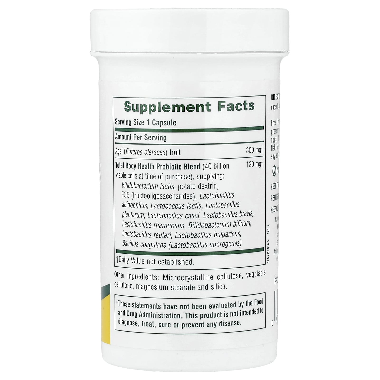 | Mistura Probiótica para a Saúde Total do Corpo (40 bilhões de células viáveis no momento da compra), fornecendo: Bifidobacterium lactis, dextrina de batata, FOS (fruto-oligossacarídeos), Lactobacillus acidophilus, Lactococcus lactis, Lactobacillus plantarum, Lactobacillus casei, Lactobacillus brevis, Lactobacillus rhamnosus, Bifidobacterium bifidum, Lactobacillus reuteri, Lactobacillus bulgaricus, Bacillus coagulans (Lactobacillus sporogenes) | 120 mg | † |
