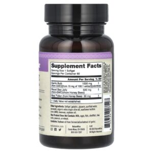 Há séculos, o alho é usado como remédio caseiro e para contribuir para um sistema cardiovascular saudável. O alho tem propriedades antioxidantes poderosas para ajudar a promover níveis mais baixos de colesterol e manter a pressão sanguínea saudável. O alho NatureWise é não OGM e inodoro. Além disso, a NatureWise foi co-formulada com Geleia de Abelha Real e Pólen de Abelha, superalimentos sinérgicos que fornecem vitaminas, oligoelementos e outros compostos biologicamente ativos para aumentar a biodisponibilidade e a eficácia do alho.