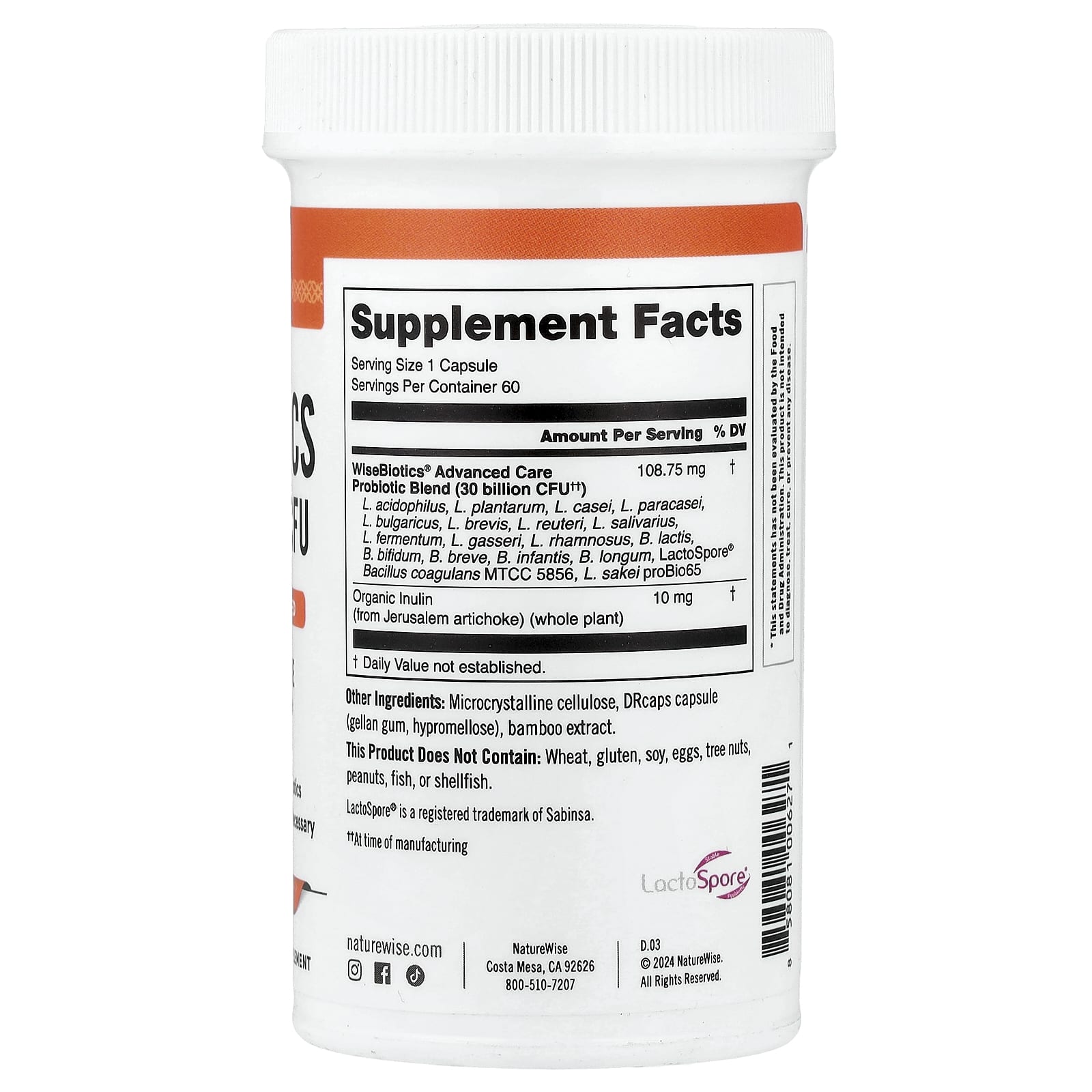 NatureWise Probióticos 60 Cápsulas – NatureWise Suplementos Saúde Intestinal Probióticos.