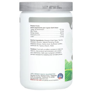 Especialmente formulado para cães idosos, mas pode ser usado em cães com mais de 1 ano de idade ou quando for necessário mais suporte. Contém uma mistura exclusiva de Cogumelo Cauda de Peru, Cardo-mariano, Ginkgo Biloba, Coenzima Q10 e Luteína que atuam sinergicamente para ajudar a manter a função cognitiva saudável, os olhos, o fígado, o coração e a saúde imunológica em geral.