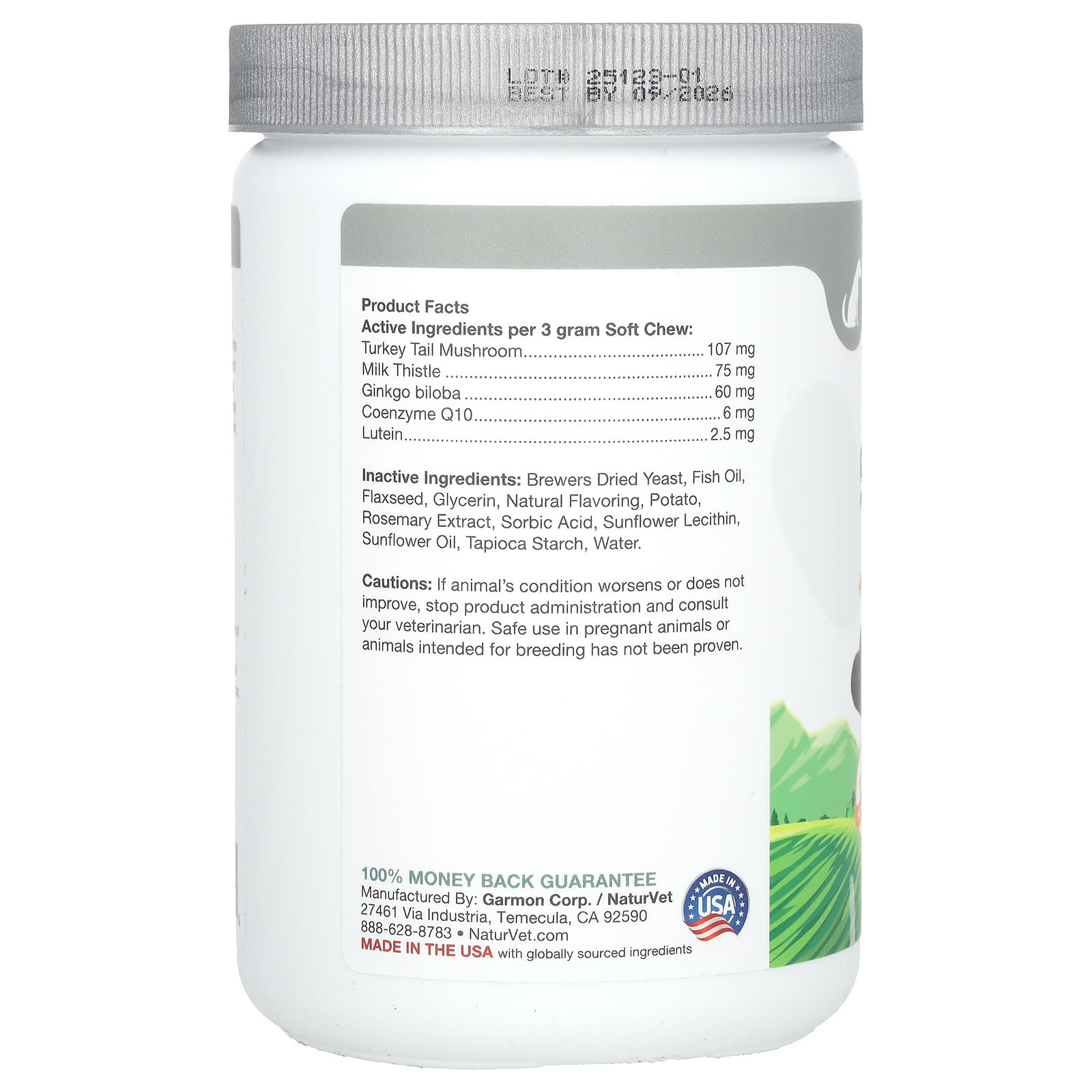 NaturVet Auxílio 5 em 1 Sênior Avançado + Cogumelo Cauda Para Cães 120 Cápsulas Mastigáveis 360 g (126 oz) – NaturVet Pets Suplementos para pets Suplementos para cães Vitaminas e minerais para cães.