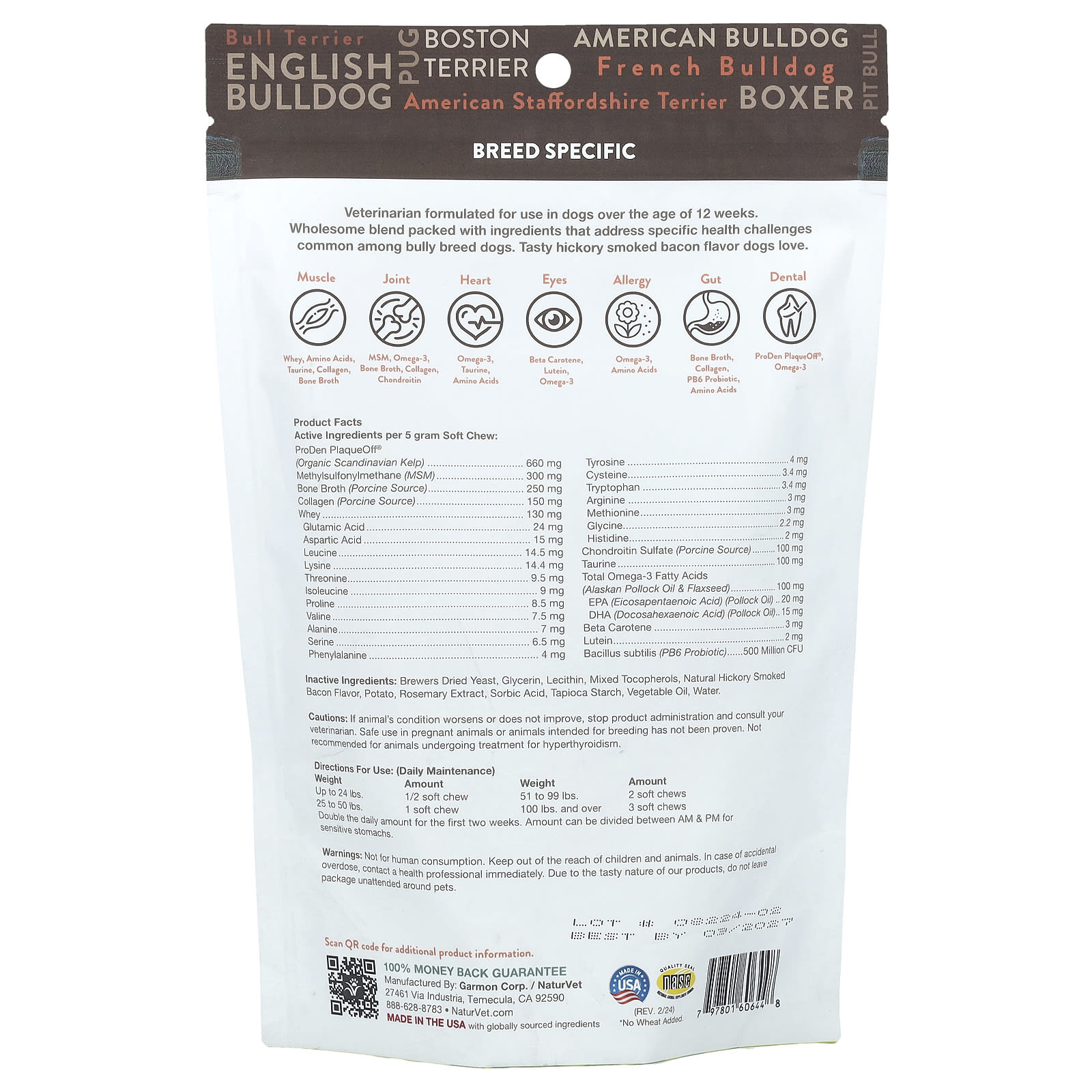 NaturVet Bully Breeds For Dogs Hickory Smoked Bacon 50 Soft Chews 8.8 oz (250 g) – NaturVet Pets Suplementos para pets Suplementos para cães Apoio para quadril e articulações de cães Saúde dos pets Tratamentos e remédios para cães.