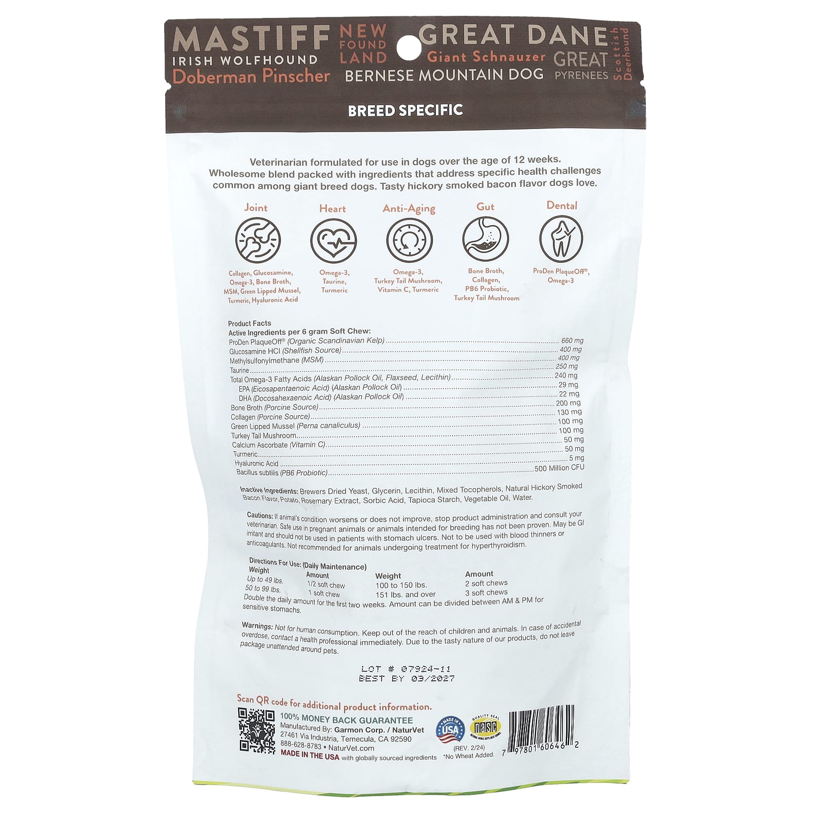 NaturVet Giant Breeds For Dogs Hickory Smoked Bacon 50 Soft Chews 10.5 oz (300 g) – NaturVet Pets Suplementos para pets Suplementos para cães Apoio para quadril e articulações de cães.