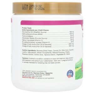 Formulado por veterinários para uso em cães e gatos com idade superior a 12 semanas. Os antioxidantes, combinados com uma mistura sinérgica de Glicosamina, MSM, Condroitina e Ômegas, ajudam a reforçar a integridade estrutural das articulações e dos tecidos conjuntivos. Fornece um importante suporte às articulações para animais de estimação adultos, inclusive de raças grandes e com excesso de peso.