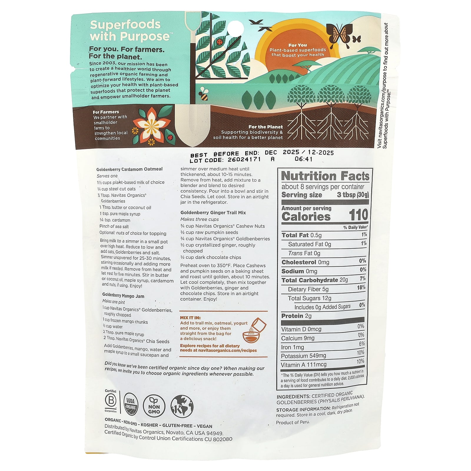 Navitas Organics Bagas Douradas Orgânicas 227 g (8 oz) – Navitas Organics Alimentos Petiscos e lanches Frutas e Legumes Secos Snacks de frutas e vegetais.